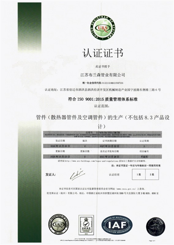 About us布蘭森熱傳輸新材有限公司二○○七年創立于廣東省深圳市,二○○九年成立江西布蘭森熱傳輸新材有限公司,2020年成立江蘇布蘭森管業有限公司,公司坐落在江蘇省泗洪縣青陽工業園內,公司自購廠房,投資1.5億元人民幣,廠房占地面積42畝,廠房建筑面積1.5萬多平方米,員工人數150多人,合作客戶200...
